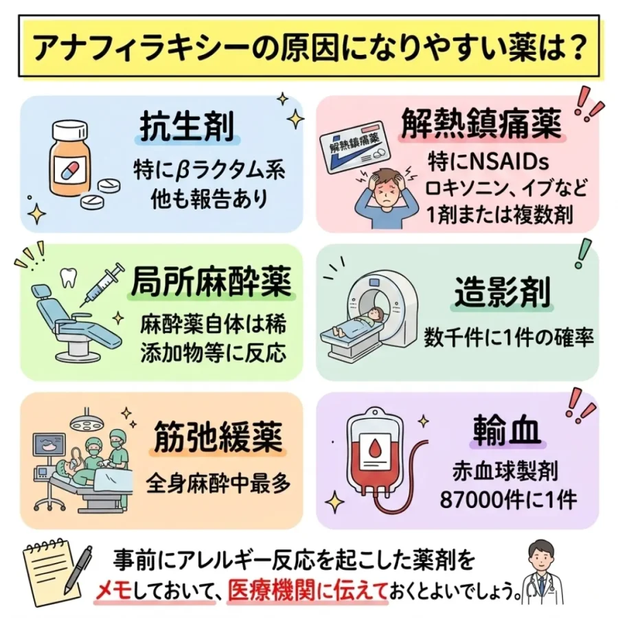 アナフィラキシーの原因になりやすい薬は?