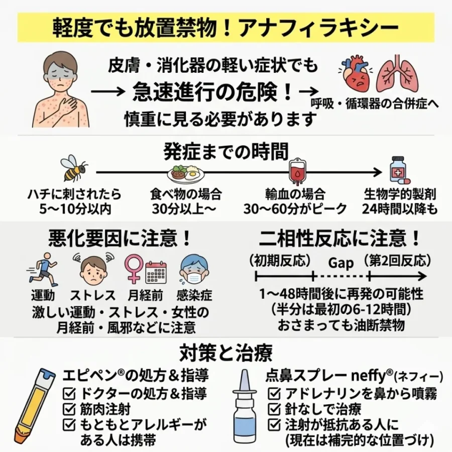 アナフィラキシーは軽度でも放置すると危険