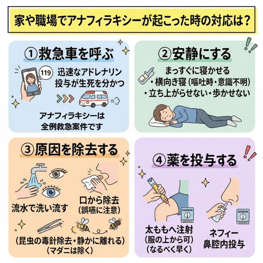 家や職場でアナフィラキシーが起こった時の対応は?