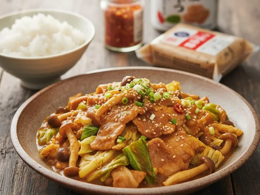 - 下準備 ・豚肉は大きい場合は食べやすい大きさに切り、(A)の酒と片栗粉を揉み込んでおきます。 ・キャベツはざく切りに、きのこは石づきを取って手でほぐしておきます。 ・「合わせ調味料」の材料はすべて混ぜ合わせて、味噌を溶かしておきます。