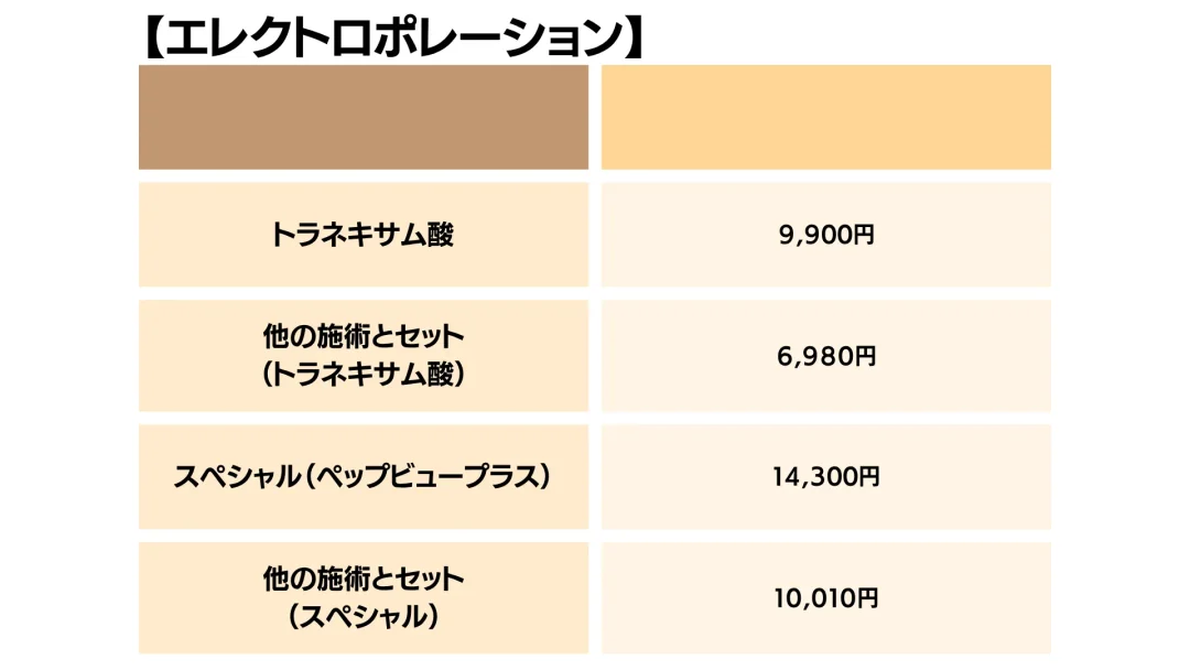 - エレクトロポレーション(トラネキサム酸)単体: 9,900円