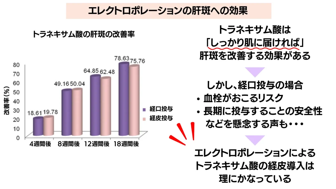 ことから、エレクトロポレーションも、この肝斑治療に有効である可能性が極めて高いと結論付けられるのです。