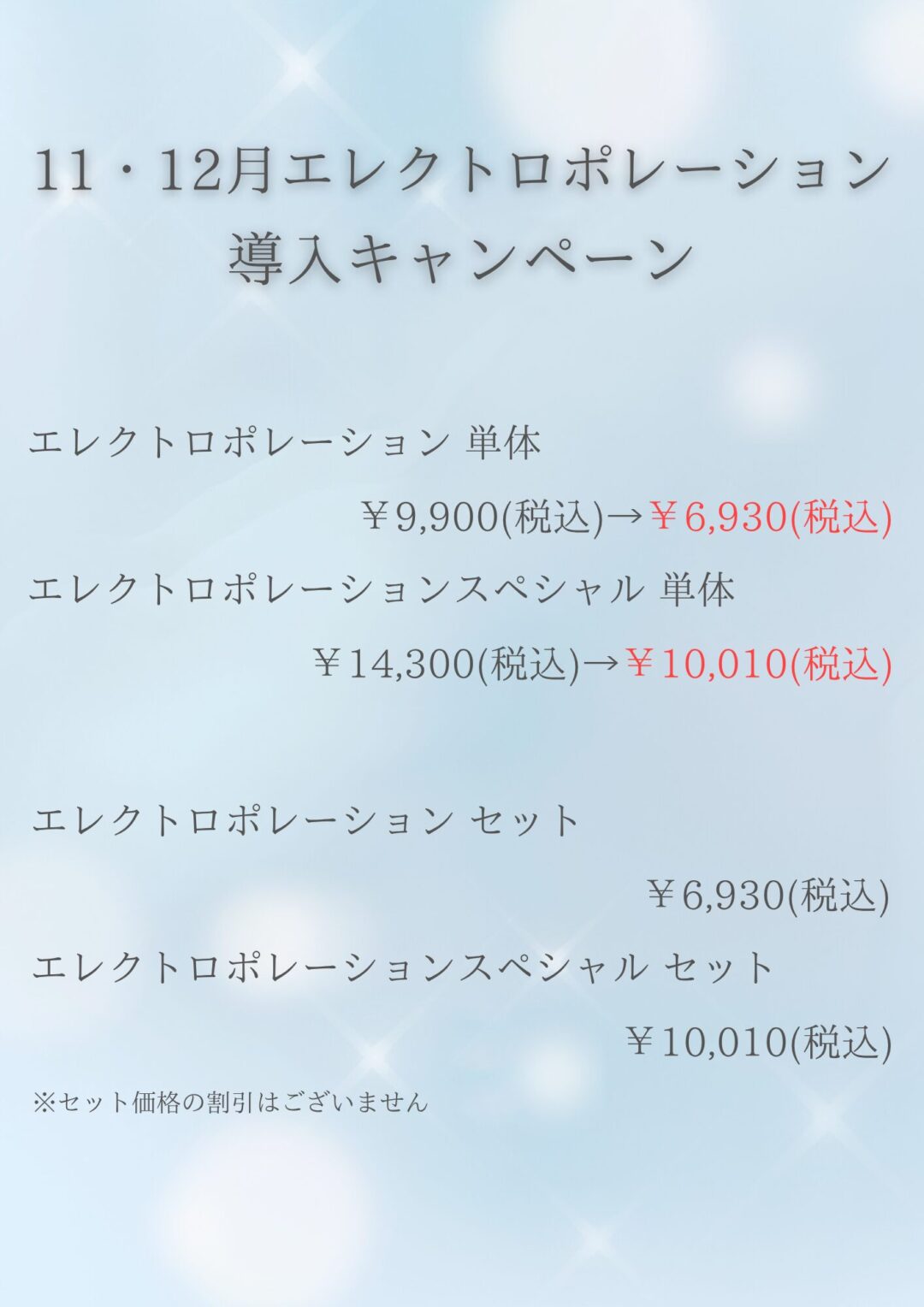 11月1日(土)より、エレクトロポレーション導入キャンペーンを開始いたします。
